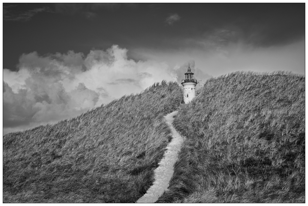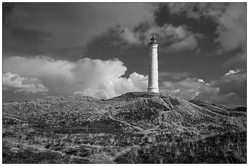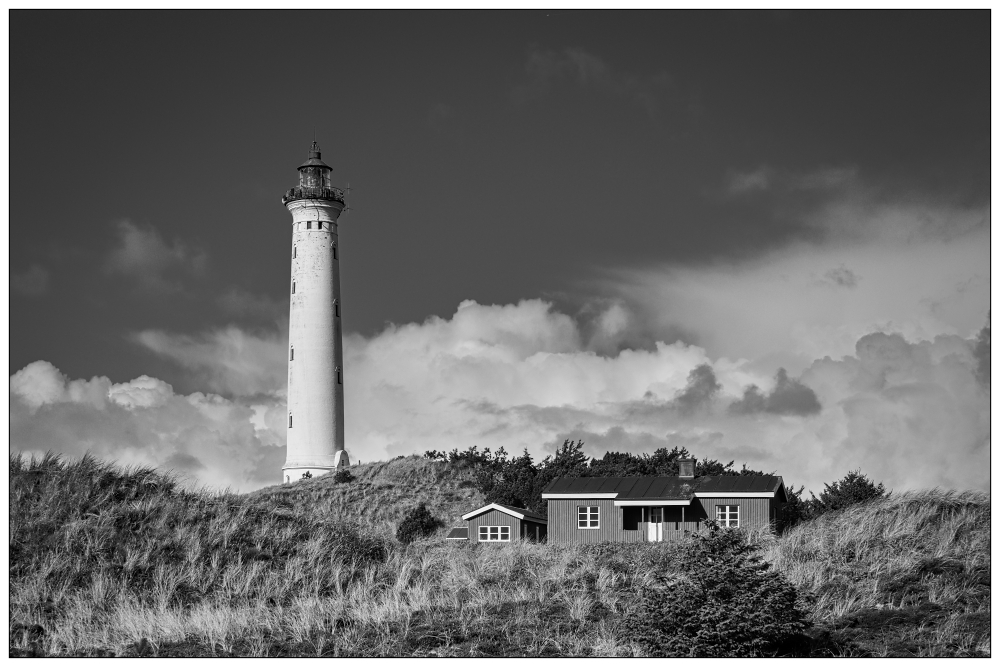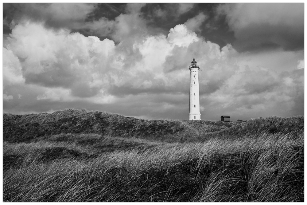Der Lyngvig Fyr und seine malerische Umgebung bieten eine Fülle von Motiven für deine Schwarzweißfotografie. Von den sanften Dünen bis hin zu den dramatischen Wolkenformationen über dem Meer gibt es unzählige Möglichkeiten, kreativ zu werden. Nutze die verschiedenen Elemente der Landschaft – sei es das Spiel von Licht und Schatten auf dem Sand oder die Struktur der Gräser in den Dünen – um interessante Kompositionen zu schaffen.