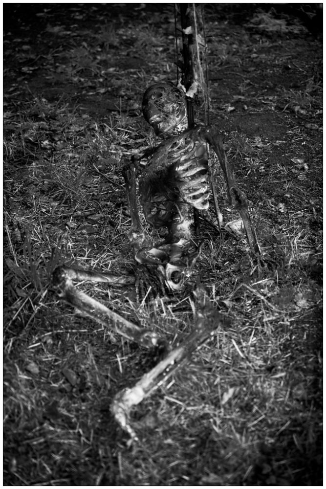 Alles war soweit schön und idyllisch – grüne Wiesen, kleine Höfe und dann, plötzlich: ein Wäldchen. Klingt harmlos? Denkste! Was uns dort erwartete, hätte locker als Kulisse für den nächsten Low-Budget-Horrorfilm durchgehen können. Da stecken Köpfe auf Pfählen, Skelette baumeln in den Bäumen und andere kriechen geradezu aus dem Boden. Die Szenerie war… sagen wir mal, „gewöhnungsbedürftig“.